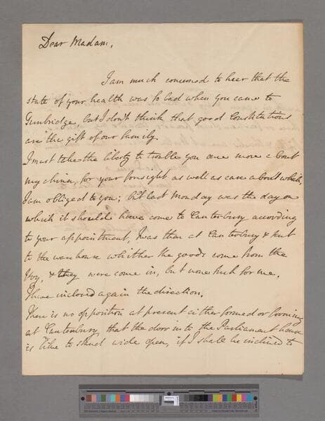 Robinson-Morris, Matthew, 2nd Baron Rokeby. Letter to Elizabeth (Robinson) Montagu