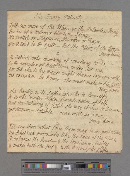 [Unknown author]. The Merry Patriot [: a poem in 11 stanzas of 4 lines each]