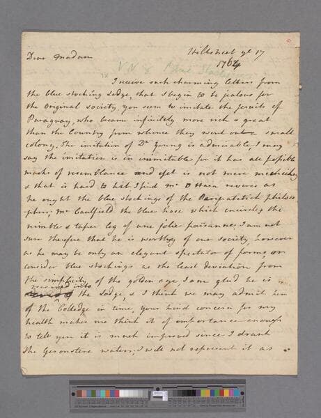 Montagu, Elizabeth (Robinson). Letter to Elizabeth (Vesey) Handcock Vesey