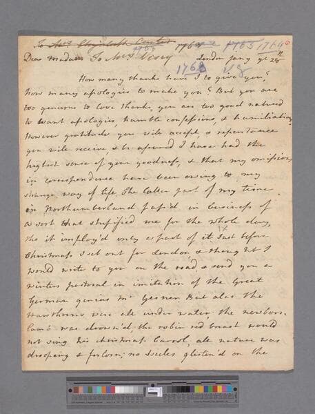 Montagu, Elizabeth (Robinson). Letter to Elizabeth (Vesey) Handcock Vesey