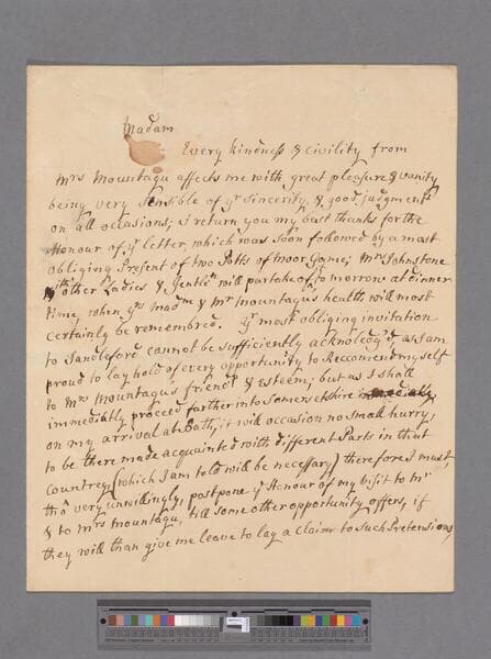 Pulteney, Harry. Letter to Elizabeth (Robinson) Montagu