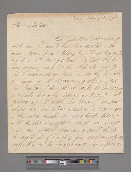 Botham, Eliza. Letter to Elizabeth (Robinson) Montagu