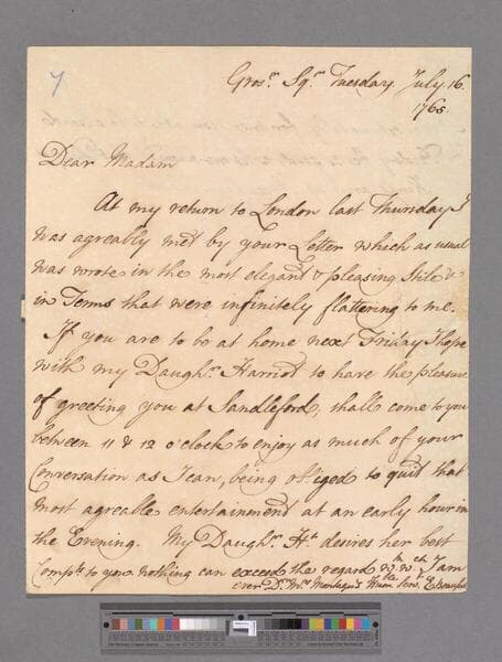 Somerset, Elizabeth (Berkeley), Duchess of Beaufort and suo jure Baroness Botetourt. Letter to Elizabeth (Robinson) Montagu