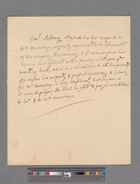 Pulteney, Harry. Letter to Elizabeth (Robinson) Montagu