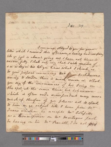 Wright, John. Letter to Elizabeth (Robinson) Montagu