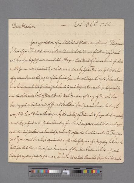 Gregory, John. Letter to Elizabeth (Robinson) Montagu