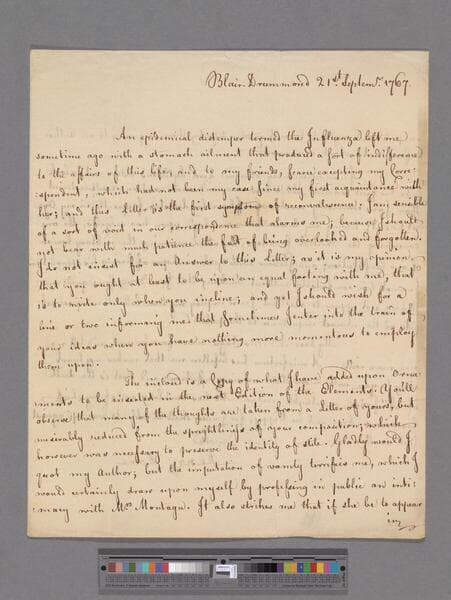 Home, Henry, Lord Kames. Letter to Elizabeth (Robinson) Montagu