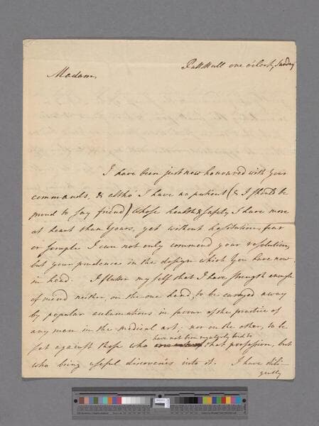 Pringle, Sir John, Bart. Letter to Elizabeth (Robinson) Montagu