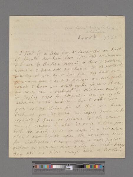 Vesey, Elizabeth (Vesey) Handcock. Letter to George Lyttelton, 1st Baron Lyttelton of Frankley