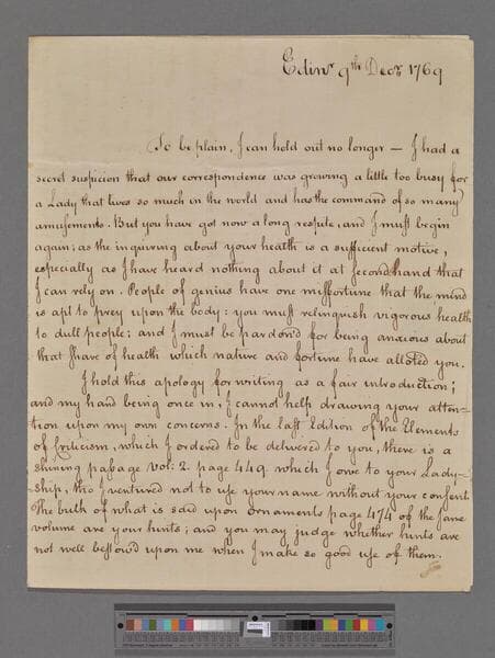 Home, Henry, Lord Kames. Letter to Elizabeth (Robinson) Montagu