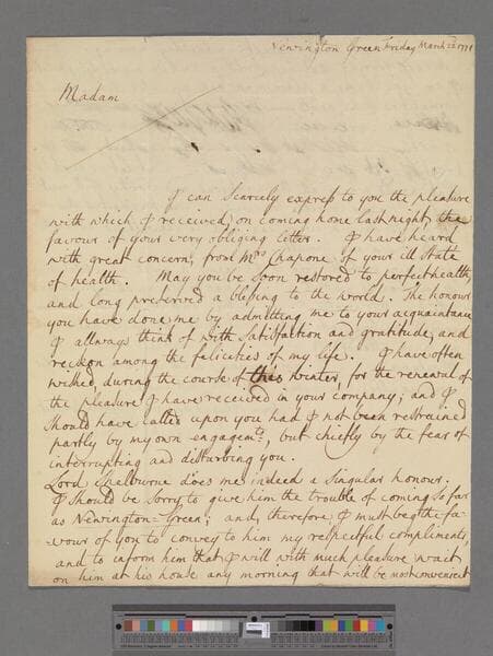 Price, Richard. Letter to Elizabeth (Robinson) Montagu