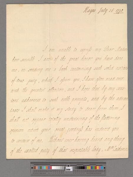Stanhope, Hester (Pitt), Countess Stanhope. Letter to Elizabeth (Robinson) Montagu