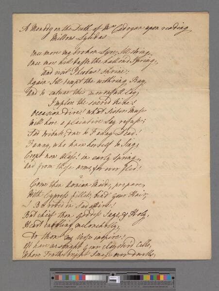 ![[Unknown author]. One the Death of Lord Lyttleton: [a poem in 5 stanzas of 4 lines each]](/_next/image?url=https%3A%2F%2Frail.huntington.org%2FIIIF3%2FImage%2F22APN41K6ZR%2Ffull%2F%5E360%2C%2F0%2Fdefault.jpg&w=750&q=75)