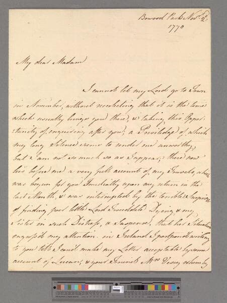 Petty, Sophia (Cateret), Countess of Shelburne. Letter to Elizabeth (Robinson) Montagu