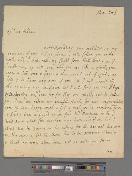 Grenville-Temple, Anna (Chambers), Countess Temple. Letter to Elizabeth (Robinson) Montagu
