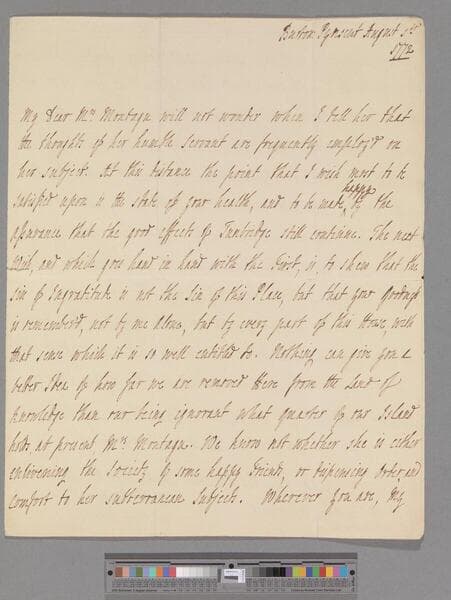 Pitt, Hester (Grenville), Countess of Chatham & suo jure Baroness Chatham. Letter to Elizabeth (Robinson) Montagu