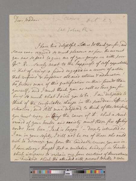 Chapone, Hester (Mulso). Letter to Elizabeth (Robinson) Montagu