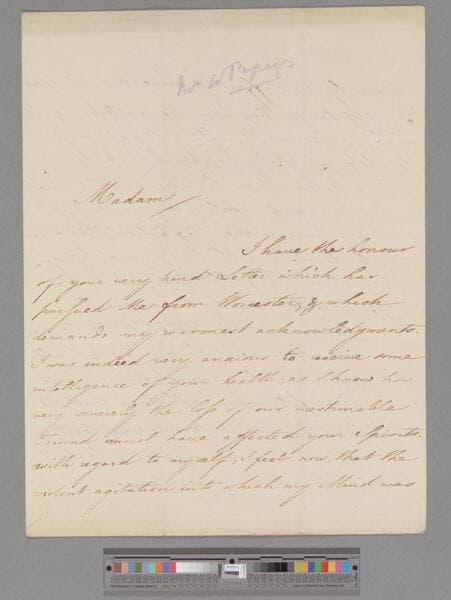 Pepys, Sir William Weller, Bart. Letter to Elizabeth (Robinson) Montagu