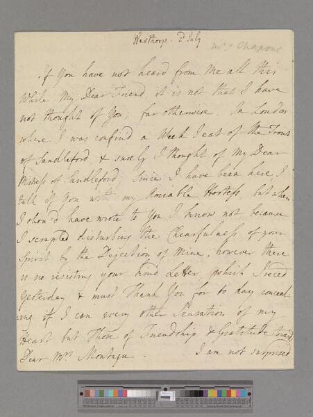 Chapone, Hester (Mulso). Letter to Elizabeth (Robinson) Montagu