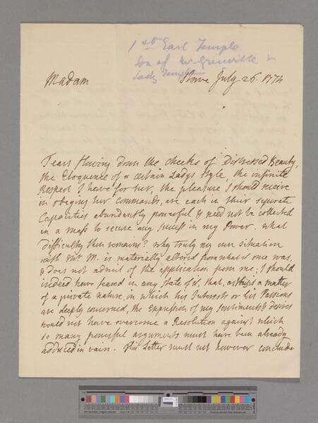 Grenville-Temple, Richard, 2nd Earl Temple. Letter to Elizabeth (Robinson) Montagu