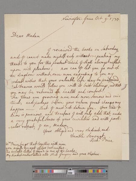 Price, Richard. Letter to Elizabeth (Robinson) Montagu