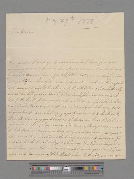 Robinson, Mary (Richardson). Letter to Elizabeth (Robinson) Montagu