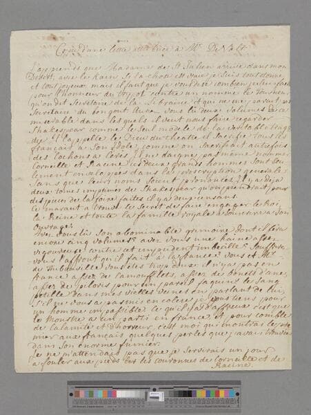 Voltaire, Francois Marie Arouet. Letter to Charles Augustin Ferriol, Comte d'Argental