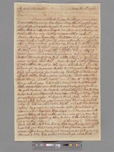 Montagu, Elizabeth (Robinson). Letter to Matthew Montagu, 4th Baron Rokeby