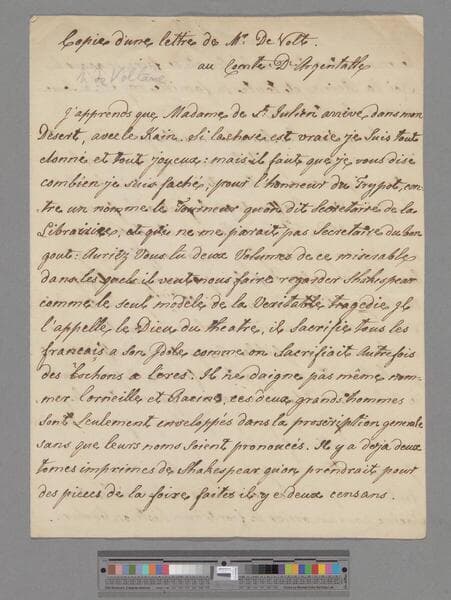 Voltaire, Francois Marie Arouet. Letter to Charles Augustin Ferriol, Comte d'Argental