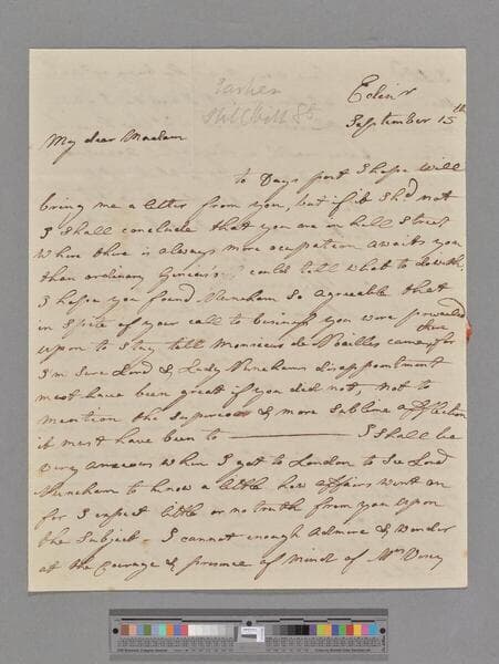 Alison, Dorothea (Gregory). Letter to Elizabeth (Robinson) Montagu