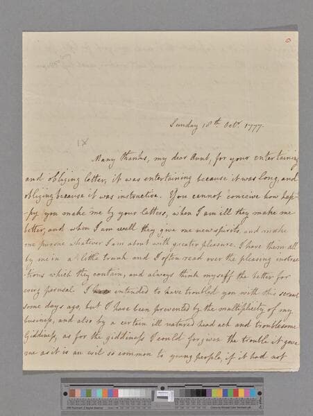 Montagu, Matthew, 4th Baron Rokeby. Letter to Elizabeth (Robinson) Montagu