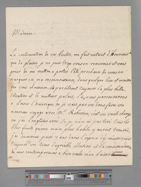 Du Boccage, Marie Anne (Le Page) Fiquet. Letter to Elizabeth (Robinson) Montagu