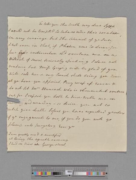 Montagu, Elizabeth (Robinson). Letter to Elizabeth (Vesey) Handcock Vesey