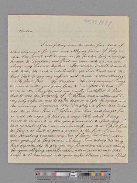 Potter, Robert. Letter to Elizabeth (Robinson) Montagu