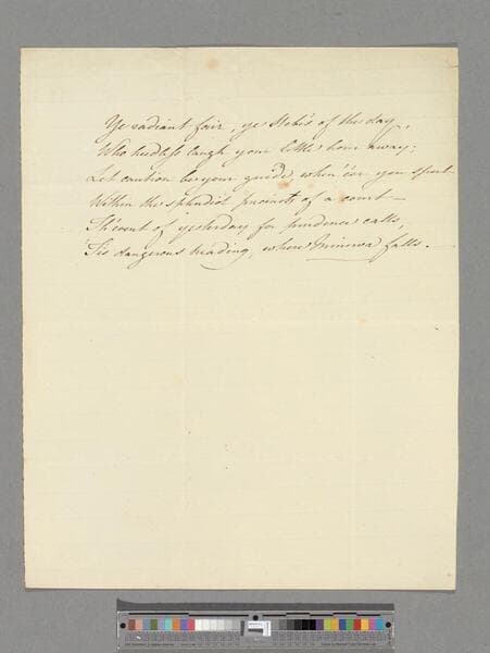 [Unknown author]. "Ye radiant fair, ye Hebis of the day": [a poem of 6 lines]