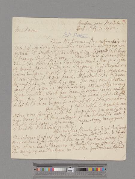 Porteus, Beilby, Bishop of London Letter to Elizabeth (Robinson) Montagu