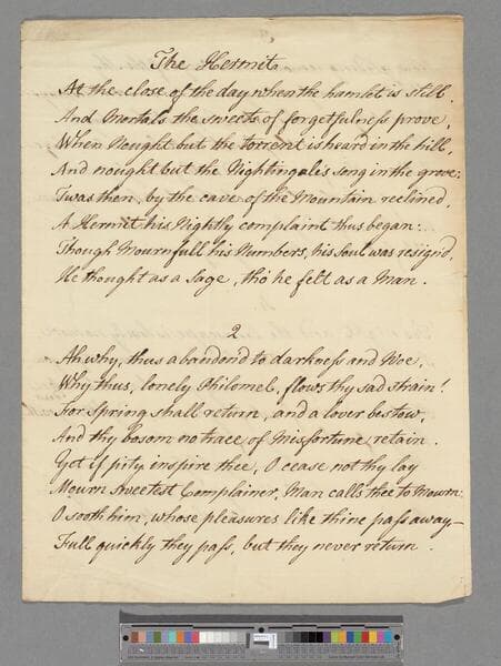 [Unknown author]. The Hermit: [a poem in 4 stanzas of 8 lines each]
