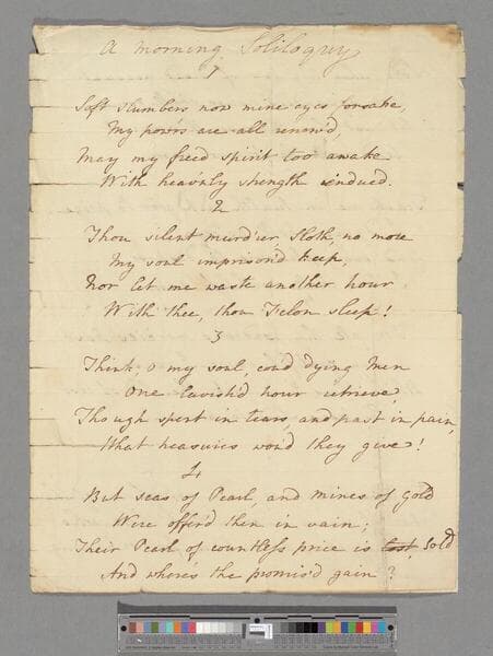 [Unknown author]. A Morning Soliloquy [: a poem in 7 stanzas of 4 lines each]