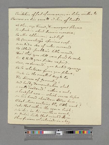 [Unknown author]. Imitation of part of some verses in Latin written to Isaac Barrow on his small edition of Euclid :[a poem]