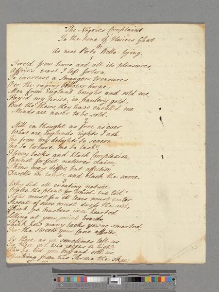 [Unknown author]. "The Negroes Complaint: [a poem in 7 stanzas of 8 lines each]"