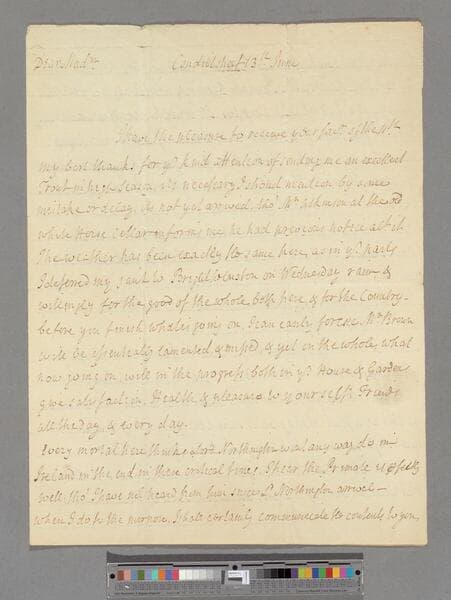 Robinson, Sir William, Bart. Letter to Elizabeth (Robinson) Montagu