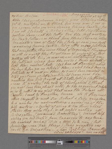 Bruhl, Alicia Maria (Carpenter) Wyndham, Countess von. Letter to Elizabeth (Robinson) Montagu