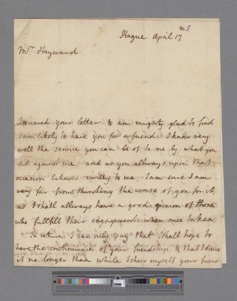 Montagu, John, 4th Earl of Sandwich. Letter to Thomas Hayward
