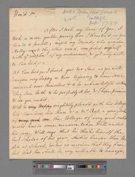 Robinson-Morris, Matthew, 2nd Baron Rokeby. Letter to Elizabeth (Robinson) Montagu