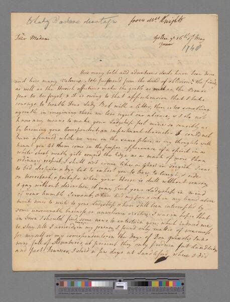 Montagu, Elizabeth (Robinson). Letter to Lady Barbara Montagu