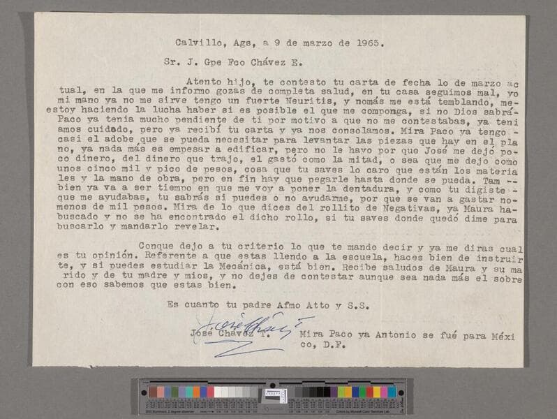 Letter from José Chávez Torres (Calvillo, Aguascalientes) to Paco Chávez Esparza (San José, California)
