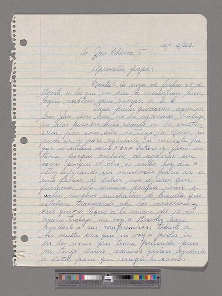 Letter from Paco Chávez Esparza (San José, California) to José Chávez Torres (San José, California)