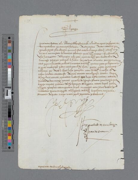 Madrid. Signed by Felipe as Prince; in handwriting of, and also signed by Joan de Samano.