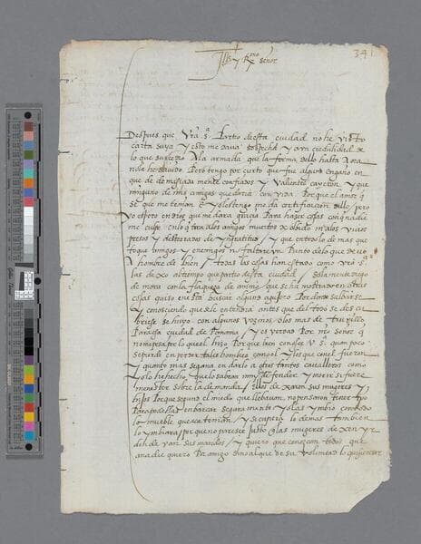 Gonzalo Pizarro draft of letter to Gerónimo de Loaysa, Bishop