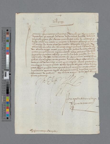 Felipe II, King of Spain, letter to the Governor of Venezula
